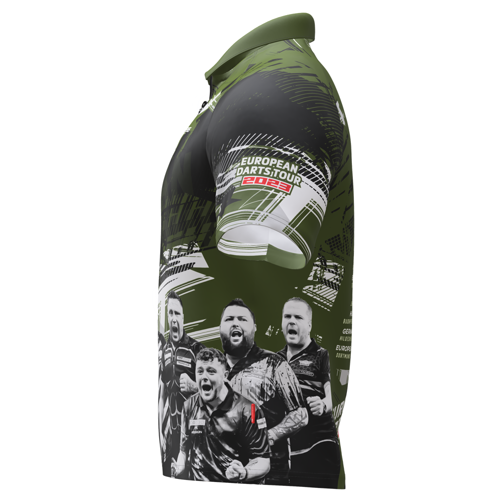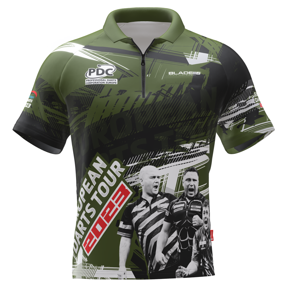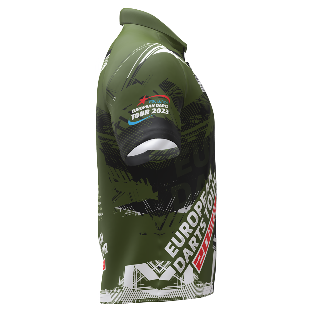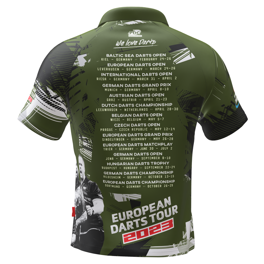 On the back of the shirt you will find all tour events of the PDC Europe. The shirt combines exceptional and stylish look with the fabric of an authentic darts jersey.