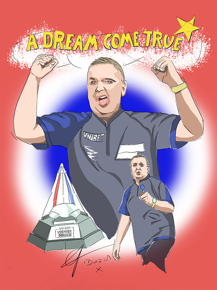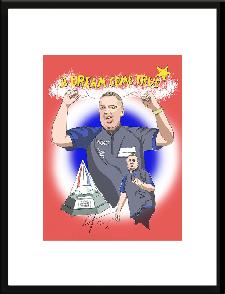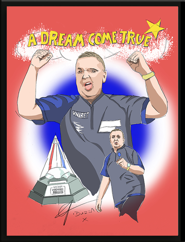 Verpassen Sie nicht die Gelegenheit, dieses limitierte Kunstwerk von Glen Durrant zu besitzen. Bestellen Sie jetzt und holen Sie sich ein Stück Darts-Geschichte in Ihr Zuhause!