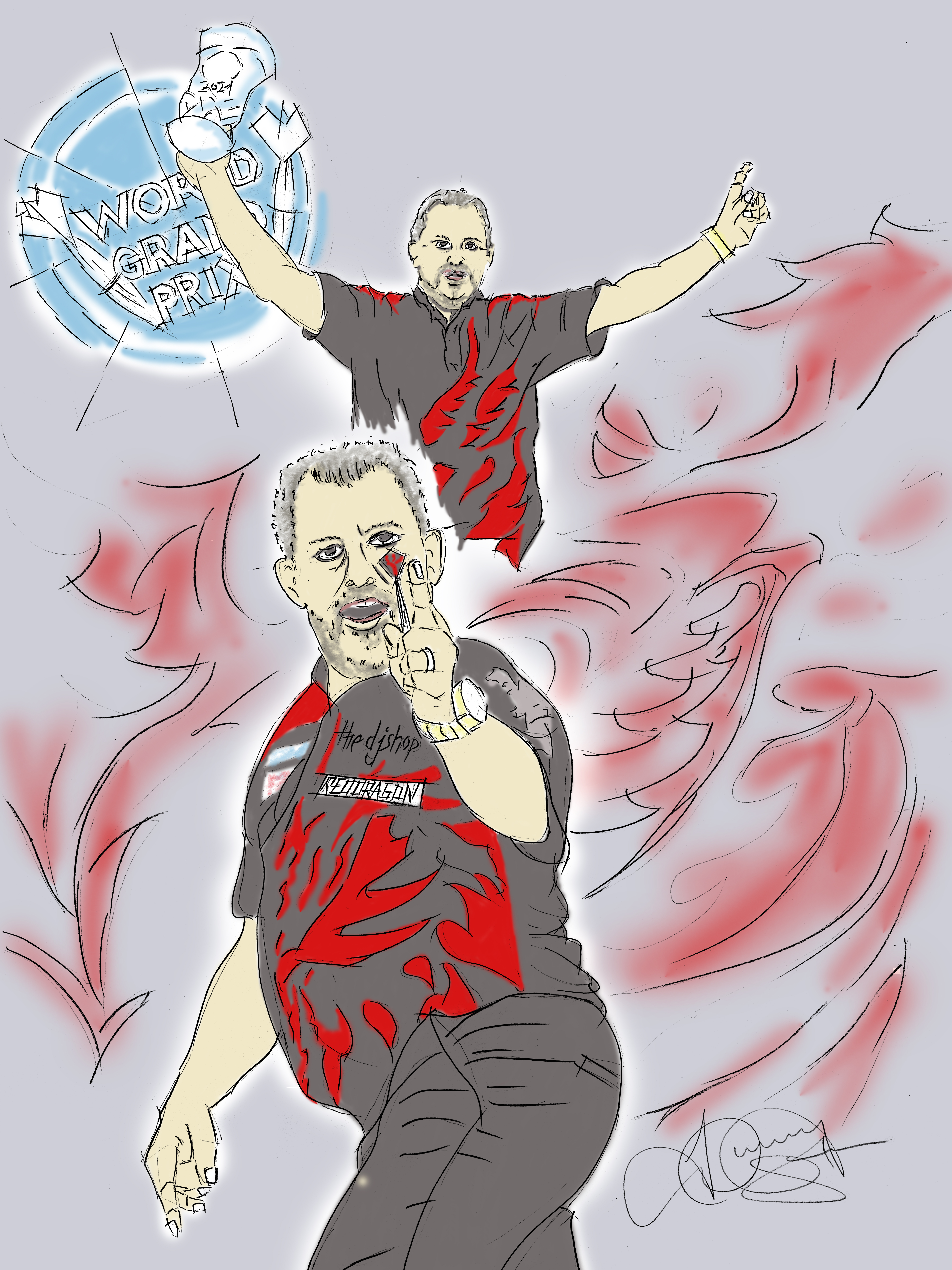 persönlich gezeichnet wurde. Dieses einzigartige Stück, signiert, ist nicht nur eine Hommage an die Präzision des Dartsports, sondern auch ein beeindruckendes Kunstwerk, das jeden Raum schmücken wird.